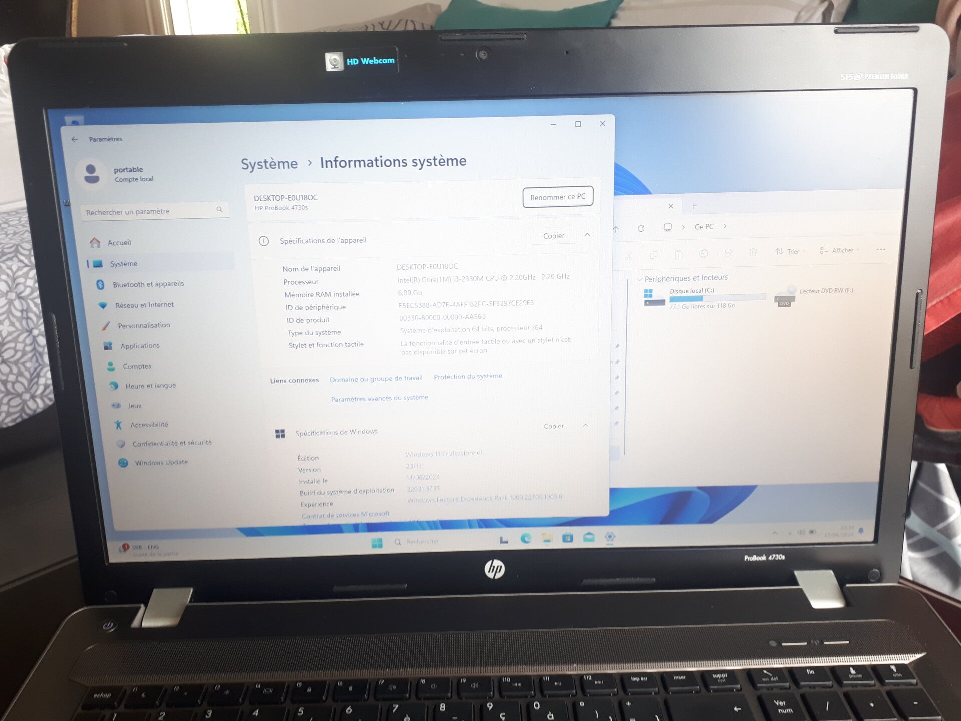 Ordinateur portable HP PROBOOK 4740s 6GB RAM HDD 500 GB PCP0059