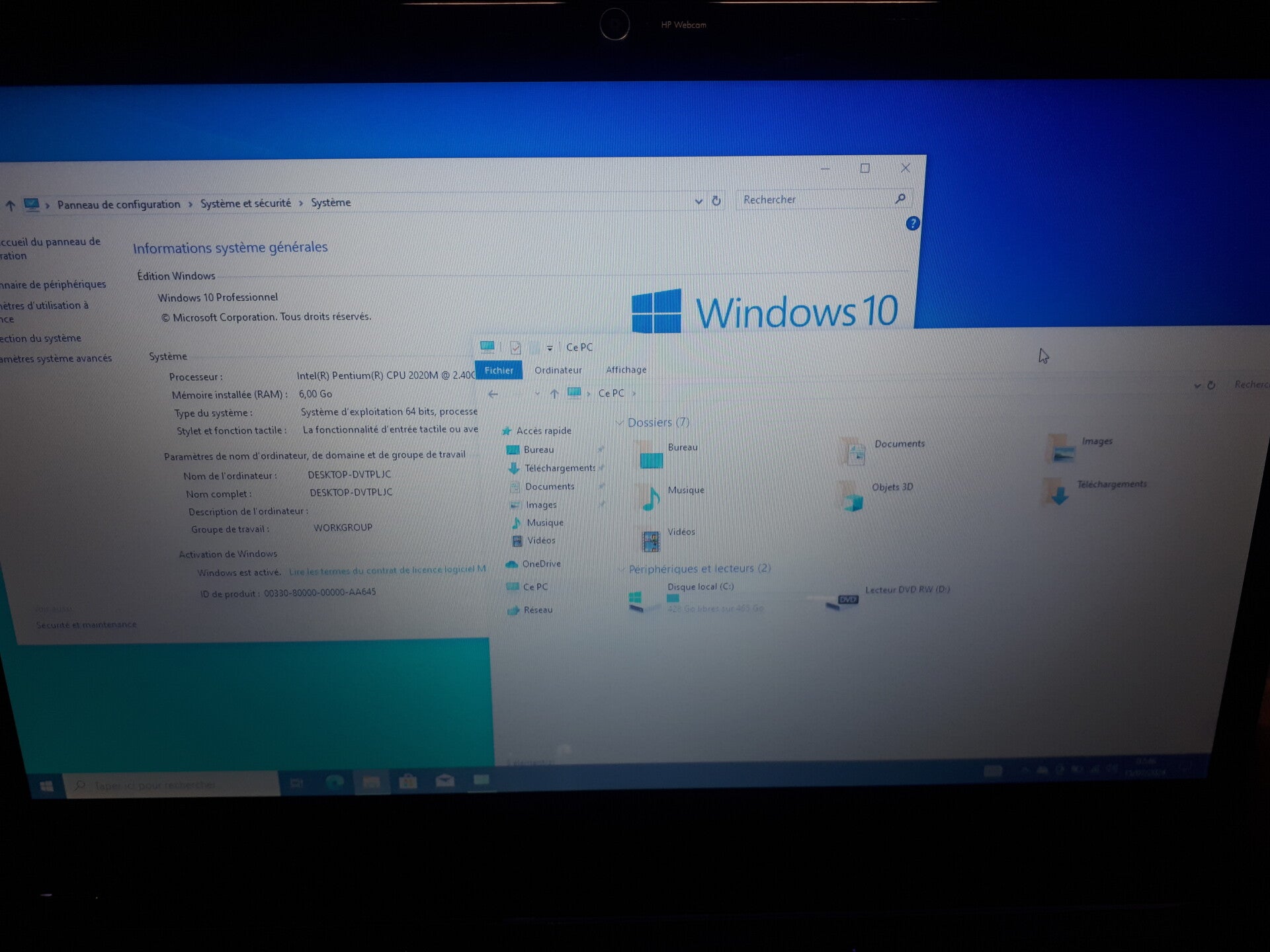 6GB de RAM disque dur HDD 500 GB et processeur Intel 2020M, taille de l'écran 17" aspect visuel (note allant de A à C en fonction de l'état visuel de l'appareil reconditionné, A étant un très bon état, B à un bon état et C à un état correct) : grade A systeme installé : Windows 10