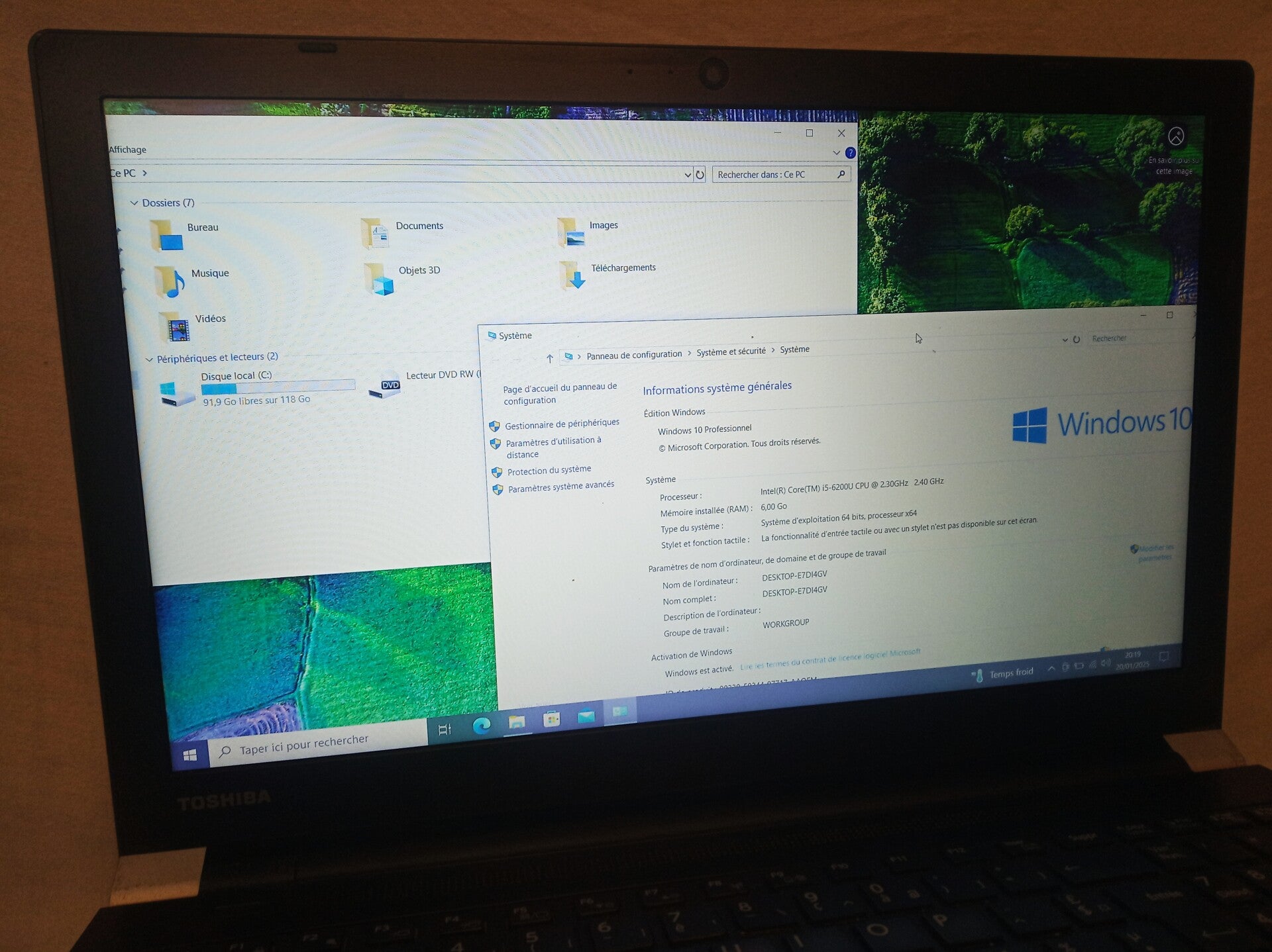 6GB de RAM disque dur SSD 128 GB et processeur Intel Core i5-6200U, taille de l'écran 15,6 aspect visuel (note allant de A à C en fonction de l'état visuel de l'appareil reconditionné, A étant un très bon état, B à un bon état et C à un état correct) : grade A systeme installé : Windows 10 La Batterie ne tient pas