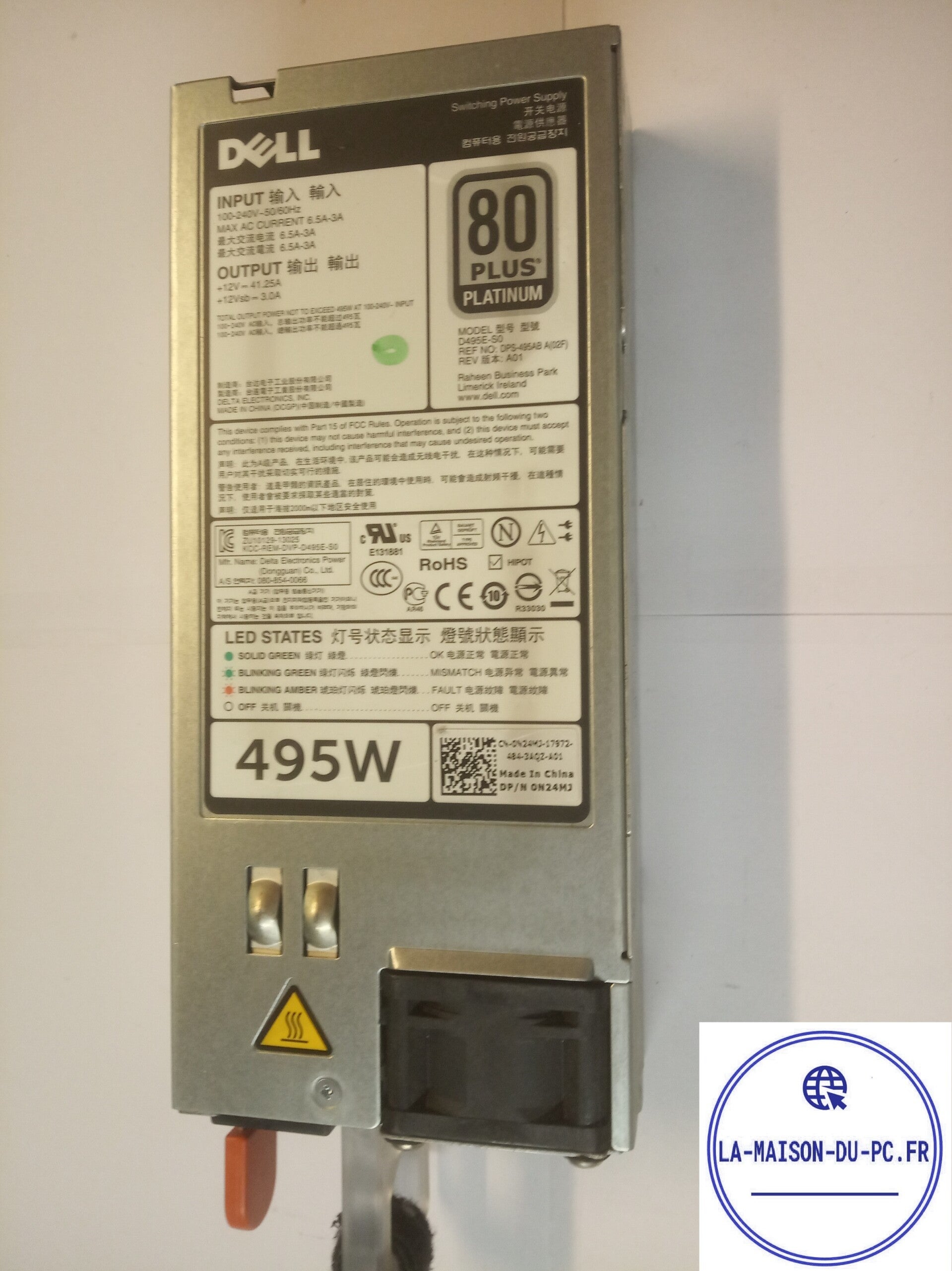 Alimentation DELL D495E-S0 DPS-495AB A(01F) REV A01 CN-0N24MJ 495W