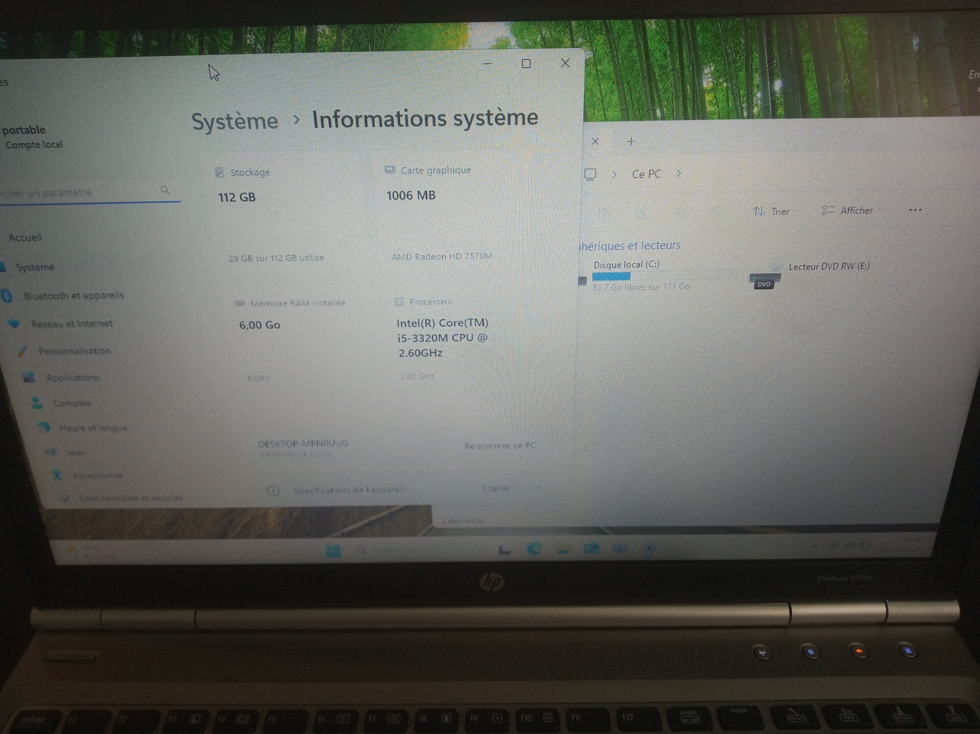 Ordinateur portable HP Elitebook 8570p 6GB RAM SSD 120 GB PCP0157