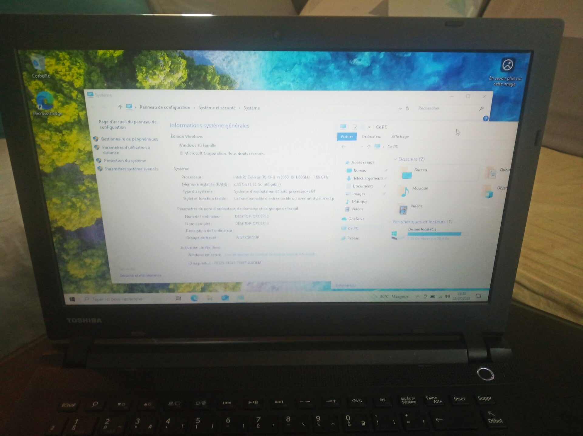 2GB de RAM disque dur SSD 32 GB et processeur Intel Celeron N3050, taille de l'écran 14" aspect visuel (note allant de A à C en fonction de l'état visuel de l'appareil reconditionné, A étant un très bon état, B à un bon état et C à un état correct) : grade C système installé : Windows 10