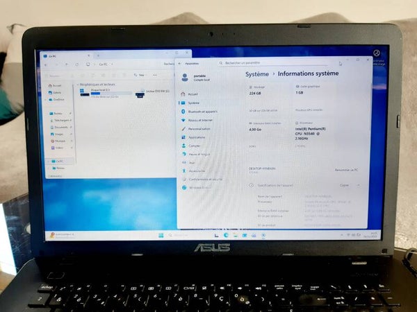 4GB de RAM disque dur SSD 240 GB et processeur Intel N3540, taille de l'écran 17,3" aspect visuel (note allant de A à C en fonction de l'état visuel de l'appareil reconditionné, A étant un très bon état, B à un bon état et C à un état correct) : grade B systeme installé : Windows 11