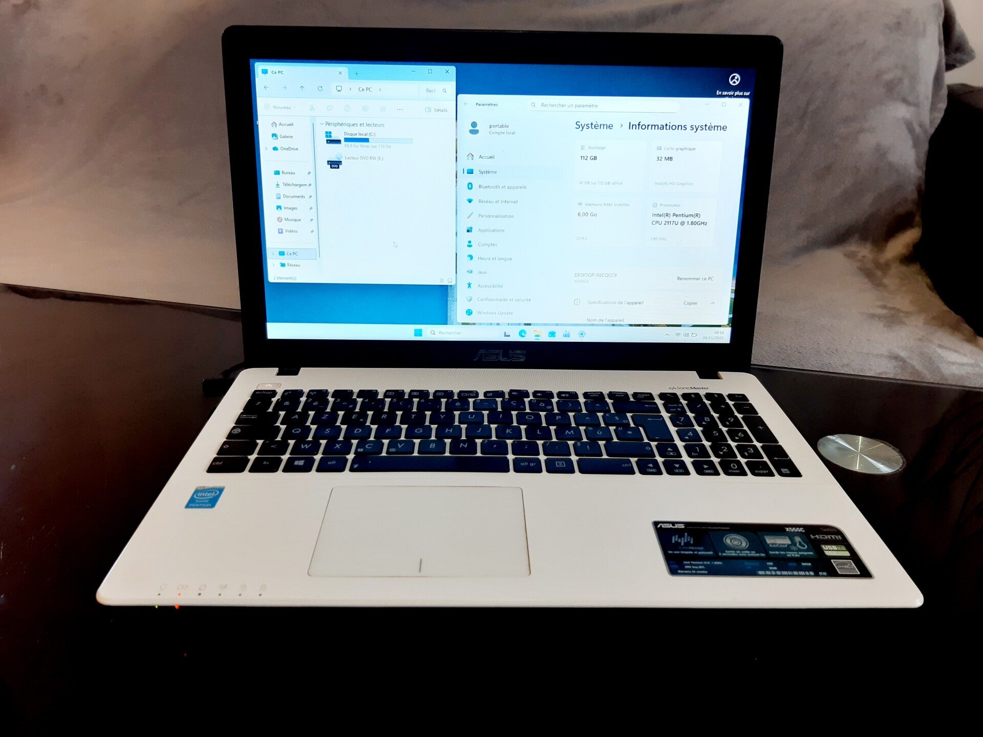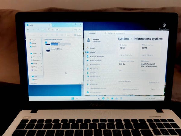 6GB de RAM disque dur SSD 120 GB et processeur Intel 2117U, taille de l'écran 17,3" aspect visuel (note allant de A à C en fonction de l'état visuel de l'appareil reconditionné, A étant un très bon état, B à un bon état et C à un état correct) : grade A systeme installé : Windows 11 la batterie (A41-X550A) ne tient pas la charge (le prix du produit a été nettement diminué en fonction du défaut) (batterie compatible disponible, il est possible de procéder au remplacement, n'hésitez pas à prendre contact pour connaître le prix du remplacement, celui ci n'excède généralement pas la vingtaine d'euros)