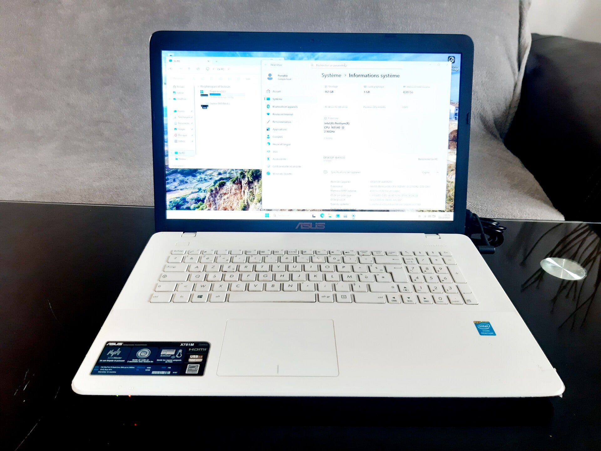 4GB de RAM disque dur SSD 120 GB et processeur Intel N3540, taille de l'écran 17,3" aspect visuel (note allant de A à C en fonction de l'état visuel de l'appareil reconditionné, A étant un très bon état, B à un bon état et C à un état correct) : grade B systeme installé : Windows 11