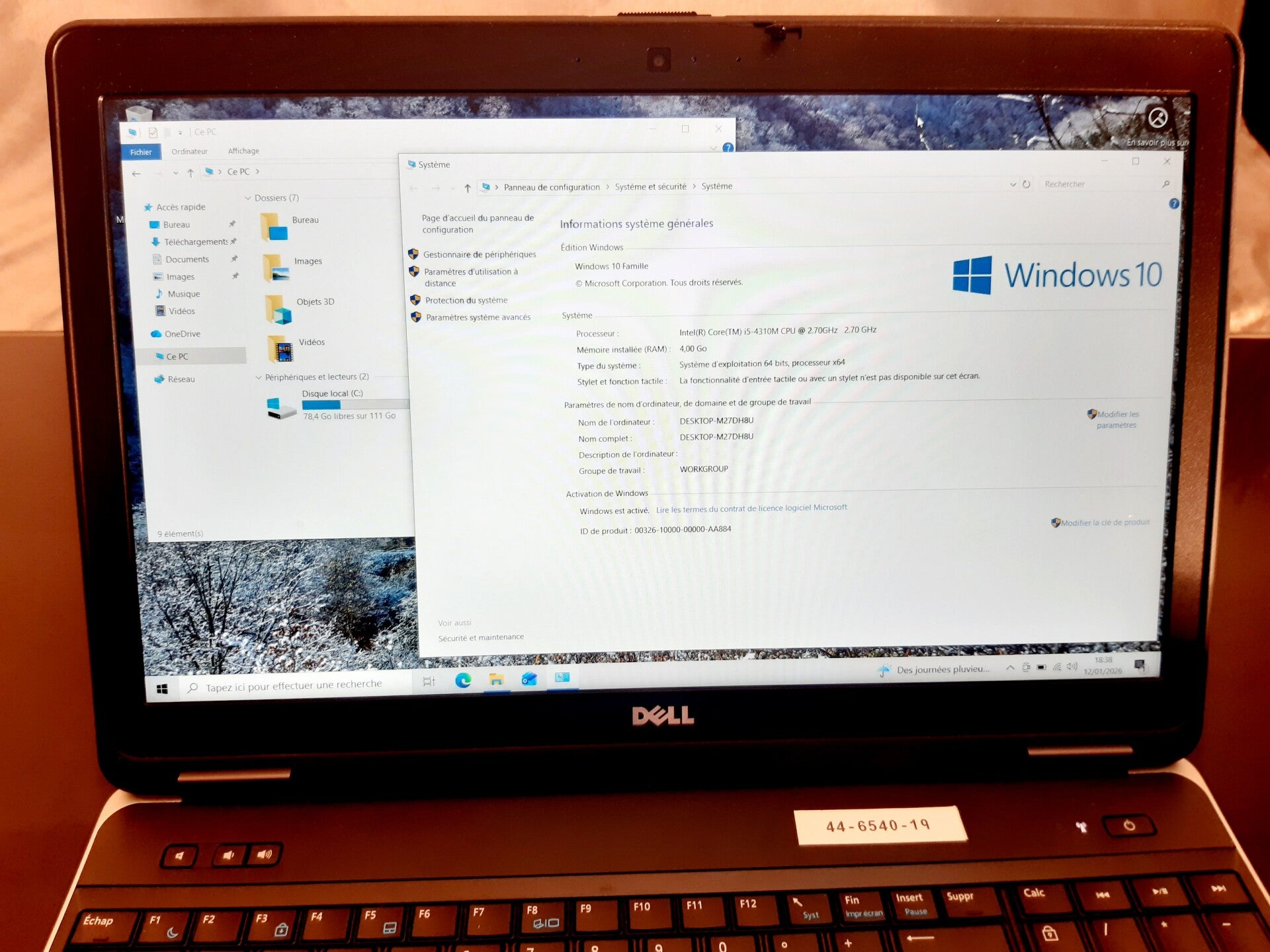 4GB de RAM disque dur SSD 120 GB et processeur Intel Core i5-4310M, taille de l'écran 15,6" aspect visuel (note allant de A à C en fonction de l'état visuel de l'appareil reconditionné, A étant un très bon état, B à un bon état et C à un état correct) : grade A systeme installé : Windows 11