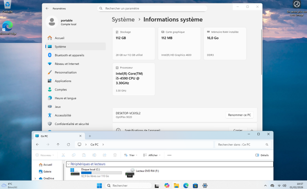 16GB de RAM, disque dur SSD 120 GB et processeur INTEL CORE I5-4590